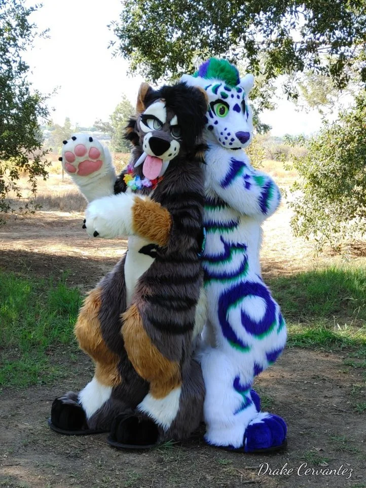 We are a team of two builders: Kaluna Pup and Strypes the Tiger. We met in 2015, Kaluna had her own fursuit company at that time, Delicious Disguises, while Strypes was also making fursuit parts on his own too. Strypes the Tiger formerly joined Kaluna in 2016, and together we built over 50 fursuits and many many more paws and tails and parts as Delicious Disguises for a decade. We met so many lovely people along the way and have vended at sevral conventions. In 2024 we were Guest Of Honor at Golden State Fur Con.